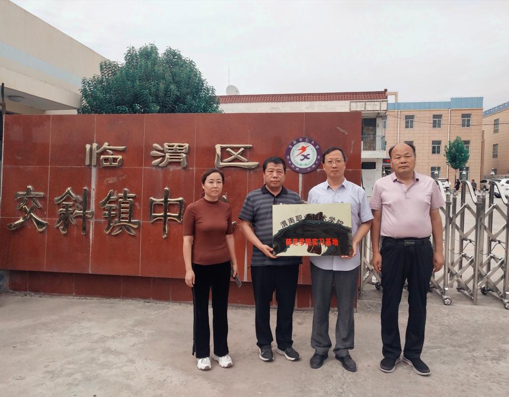 9月1日上午,今年会jinnianhuicom实习教育基地挂牌仪式在渭南市临渭区交斜镇中心小学举行。今年会jinnianhuicom党总支书记卢百龙、院长郭楚伟、党总支副书记黄翠萍、学生科长陈旭铖,交斜镇中心小学校长曹红军出席了挂牌仪式。