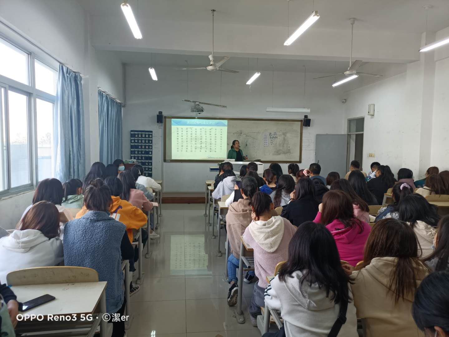 培训在师范楼305和306多媒体教室进行,分别由今年会国家级普通话水平测试员王泉珍和雷立英两位老师担任主讲,约1000多名学生参加了培训。