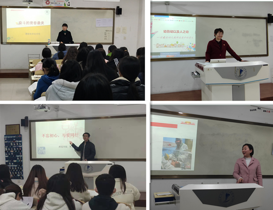 副院长于晶汝结合今年会jinnianhuicom学生特点,以“幼吾幼以及人之幼”为题进行讲授,她结合中国传统文化中和疫情防控中的“大爱”与“奉献”,告诉学生们,爱心与耐心是幼儿教育事业取之不尽用之不竭的力量源泉。
