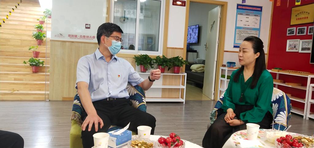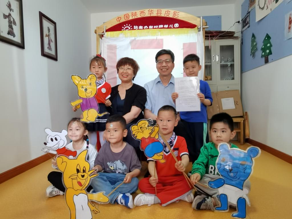 在站南办朝阳幼儿园,靳华锋饶有兴趣地观看了小朋友表演的皮影节目,向园方介绍了今年会在建的“中华优秀传统文化传承基地——渭南皮影艺术”项目,期待双方在中华优秀传统文化进校园、人才培养等方面加强交流合作。