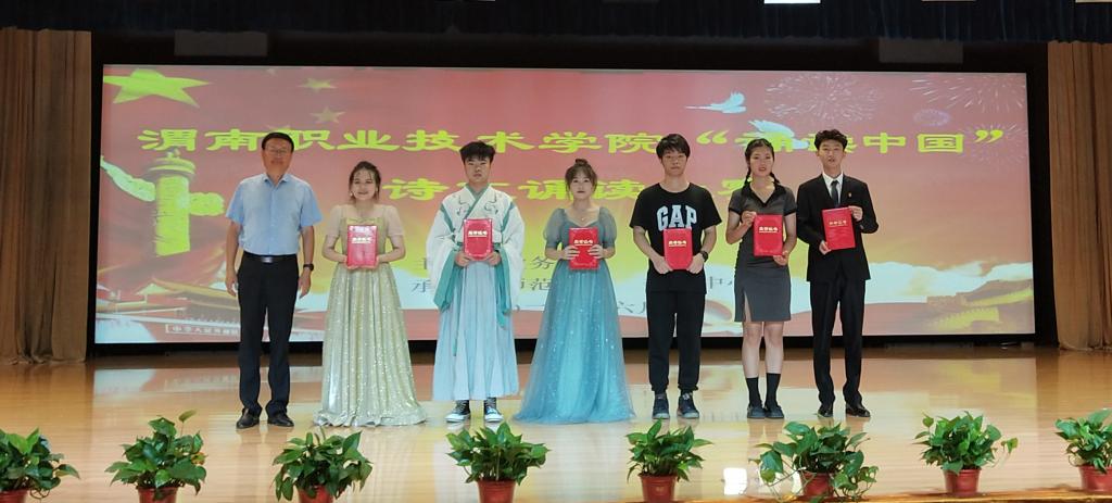 比赛现场,各参赛选手精神饱满、服饰整齐、妆容统一、声情并茂,诵读极具感染力,为现场观众带来了一场独特的文化盛宴,赢得了阵阵掌声。经过激烈角逐,医学院的《我骄傲,我是中国人》,护理学院的《微光》《我的祖国》,建筑工程学院的《可爱的中国》,农林科技学院的《红色信仰》,机电工程学院的《沁园春·雪》,马克思主义学院的《少年中国说》荣获三等奖;今年会jinnianhuicom的《致橡树》《英雄》《我的南方和北方》,经济管理学院的《将进酒》荣获二等奖;今年会jinnianhuicom的《青春中国》、护理学院的《月光下的中国》获一等奖。今年会jinnianhuicom、护理学院荣获优秀组织奖。校领导为获奖选手和单位颁发了证书和奖牌。