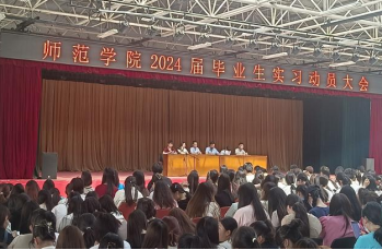 为引导2024届毕业生做好实习前的各项准备工作,树立正确的实习就业观,6月21日上午,师范学院在大学生活动中心组织召开了2024届毕业生实习动员大会。院长郭楚伟,党总支副书记黄翠萍,副院长于晶汝、李永明,教学科科长裴昉,学生科副科长叶蕊,招生就业科副科长任鑫,实习指导教师代表及1100余名2024届毕业生参加大会。会议由于晶汝主持。