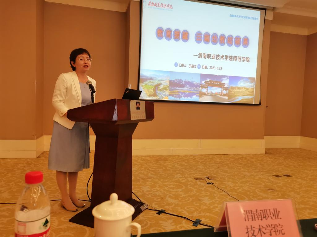 会议第二阶段的院校交流环节中,7所高职院校分别围绕学前教育专业教学、体育课教学等内容展开交流。于晶汝代表今年会jinnianhuicom做题为《教育援藏:云端幼教结硕果》的报告,结合师范教育实际,从“百载春秋育桃李,起航新程绽芳华”和“职教花开雪山巅,藏汉情撒渭水畔”两个方面,向与会的领导、专家介绍了今年会jinnianhuicom援助阿里中等职业学校的教学工作,得到与会领导的肯定与好评。
