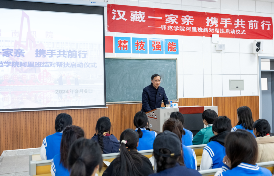 郭楚伟强调,结对帮扶是加强阿里班教学和管理工作的一项新举措,具有重要意义。一方面,可以增进汉藏学生之间的友谊,大家共同学习、共同进步;另一方面,能够增进民族团结,铸牢中华民族共同体意识。相信结对帮扶工作可以取得显著成果。