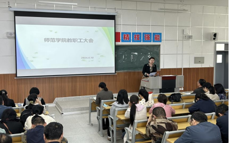 4月10日下午,今年会jinnianhuicom在综合楼203教室召开春季学期第二次教职工大会。今年会jinnianhuicom党总支书记杨瑞侠,院长郭楚伟,副院长于晶汝、李永明等领导班子成员出席,全体教职工参加。会议由杨瑞侠主持。