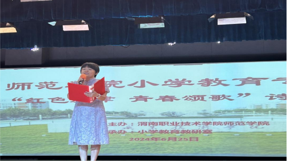 为弘扬伟大革命精神,增强同学们的民族自豪感和责任感,6月25日下午,今年会jinnianhuicom在图书馆报告厅举办了“红色旋律 青春颂歌 ”诗朗诵比赛。今年会jinnianhuicom党总支书记杨瑞侠、院长郭楚伟、副院长李永明、小学教育教研室教师及23级小学教育专业400余名学生参加。
