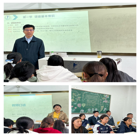 听课结束后,靳华锋对课堂教学进行了简要点评。他表示,雷立英老师的汉语教学规范标准,同学们的学习态度积极端正。针对2405班有12名少数民族学生的实际,靳华锋要求同学们主动了解和学习不同民族的文化,增进相互之间的理解和友谊,筑牢中华民族共同体意识,维护民族团结大好局面。他希望同学们一定要爱祖国、爱家乡、爱学校,五育并举,全面发展,锻炼身体,磨炼意志,做好职业生涯规划,以“教育家精神”和“四有好老师”标准为指引,认真学习,苦练技能,做一名新时代党和人民满意的好老师,为中华民族伟大复兴奉献青春年华。