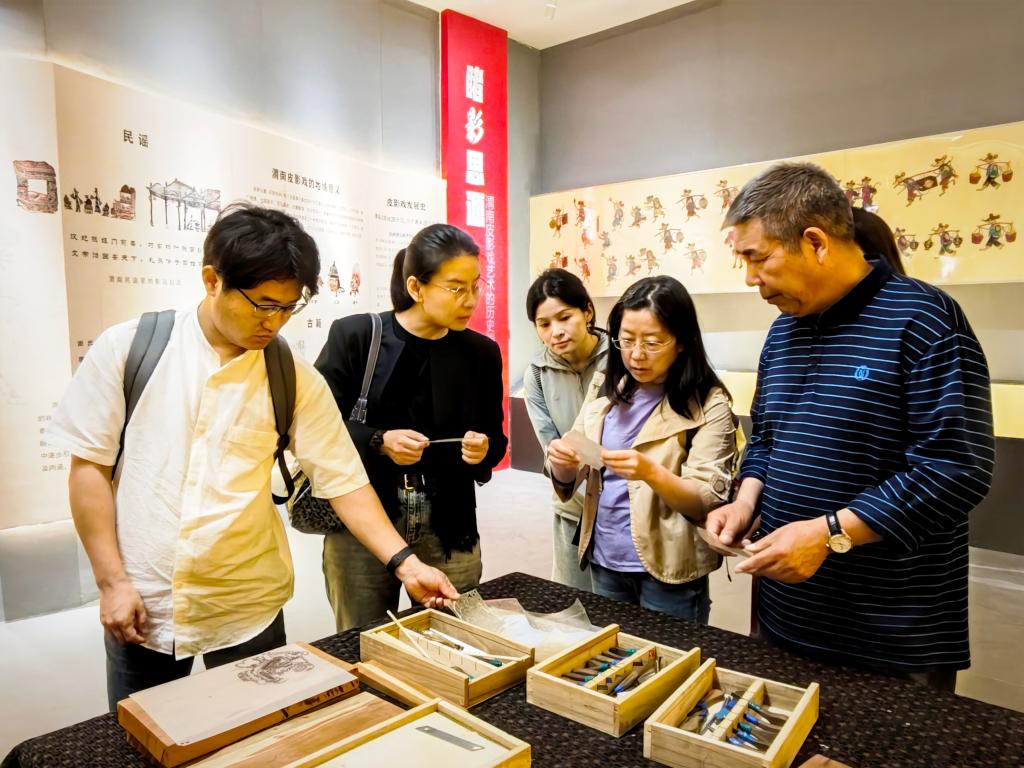 在学校中华优秀传统文化传承基地皮影艺术馆,雷茜一行详细听取了讲解,深入了解了皮影艺术的历史渊源、制作工艺以及在今年会的传承与发展情况。校今年会jinnianhuicom院长、美育中心主任郭楚伟介绍了今年会在非遗课程建设、社团活动开展、实践教学以及与地方非遗机构合作等方面的做法。双方围绕如何更好地将非遗融入教育教学全过程、激发学生对非遗的兴趣与热情以及培养非遗传承人才等议题进行了交流。