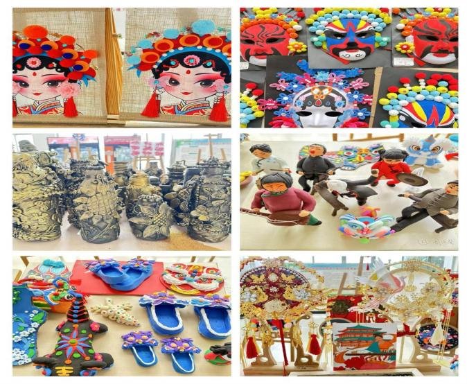 本次作品展收集了2021级学前教育五高各班的优秀手工作品,作品种类繁多,涵盖了剪纸、泥塑、布艺、皮影、面花、综合材料等多个类别,从精美的剪纸到栩栩如生的泥塑,每一件作品都凝聚着学生的智慧与情感。同时,这些作品中既有对古老技艺的忠实传承,也有融合现代审美的创新探索,吸引了众多师生驻足观看并连连称赞。