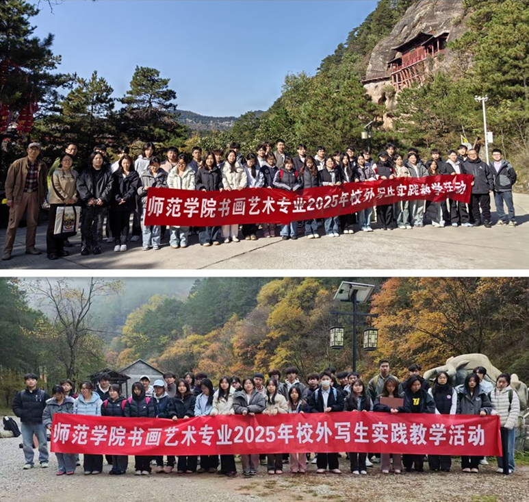 黄陵国家森林公园以其独特的自然景观和深厚的文化底蕴,为师生们提供了丰富的创作素材。在书画艺术教研室邢健、蒲维辉、董明瑛、朱晓永4名教师的带领下,学生们深入公园腹地,在千年古柏林、飞瀑流泉、奇峰怪石间寻找创作灵感。森林公园四季分明的自然景观,特别是秋季层林尽染的壮美景象,是学习中国山水画的绝佳课堂。